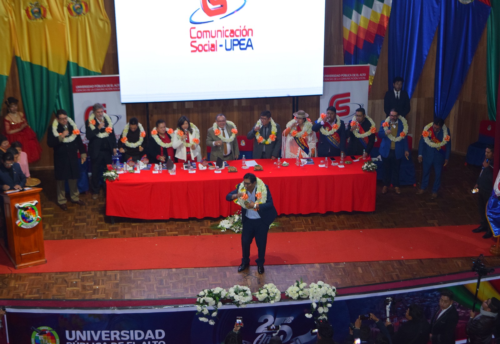 Condori, pidió a los estudiantes de Comunicación sentirse orgullosos de ser parte de la UPEA y anunció implementar la “beca tesis”, un beneficio directo para los futuros profesionales.