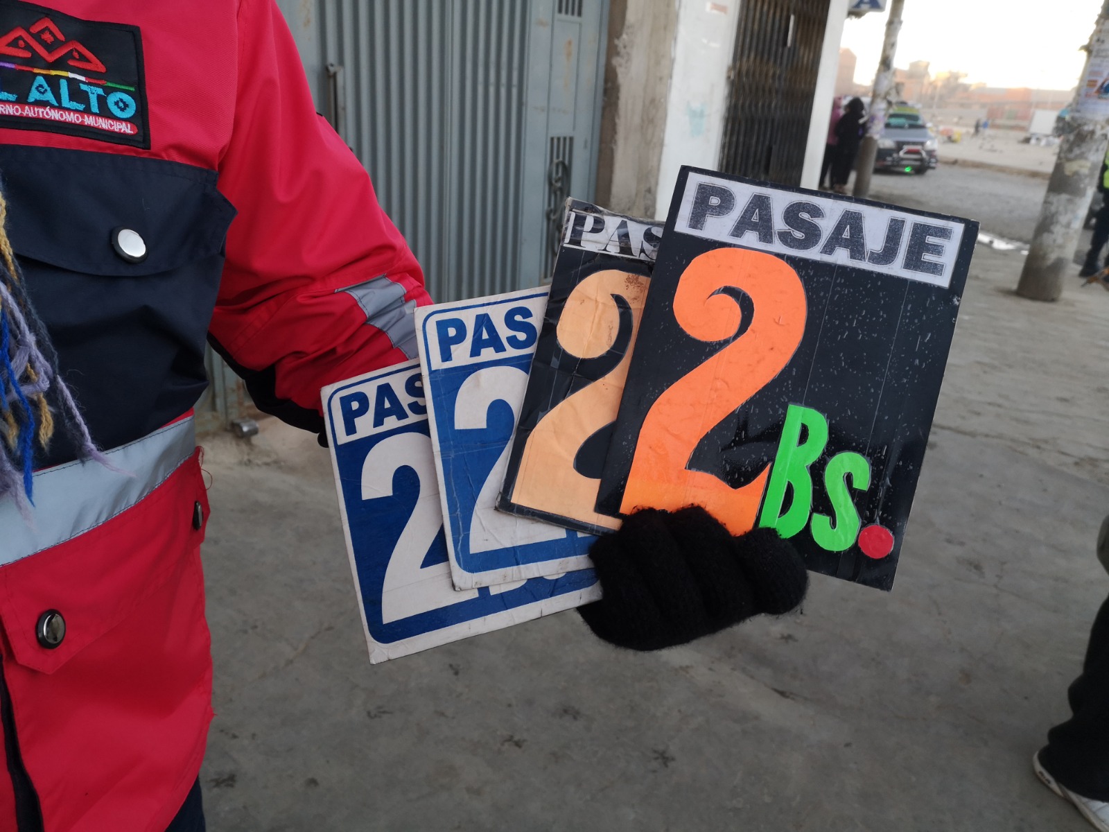 La pasada semana y en coordinación con la Subalcaldía del Distrito 8 se desplegaron guardias municipales y dirigentes de la Fejuve Sur para sancionar el trameaje en el sector de la extranca Senkata y recordar a los choferes que el pasaje único es de Bs 1,50.