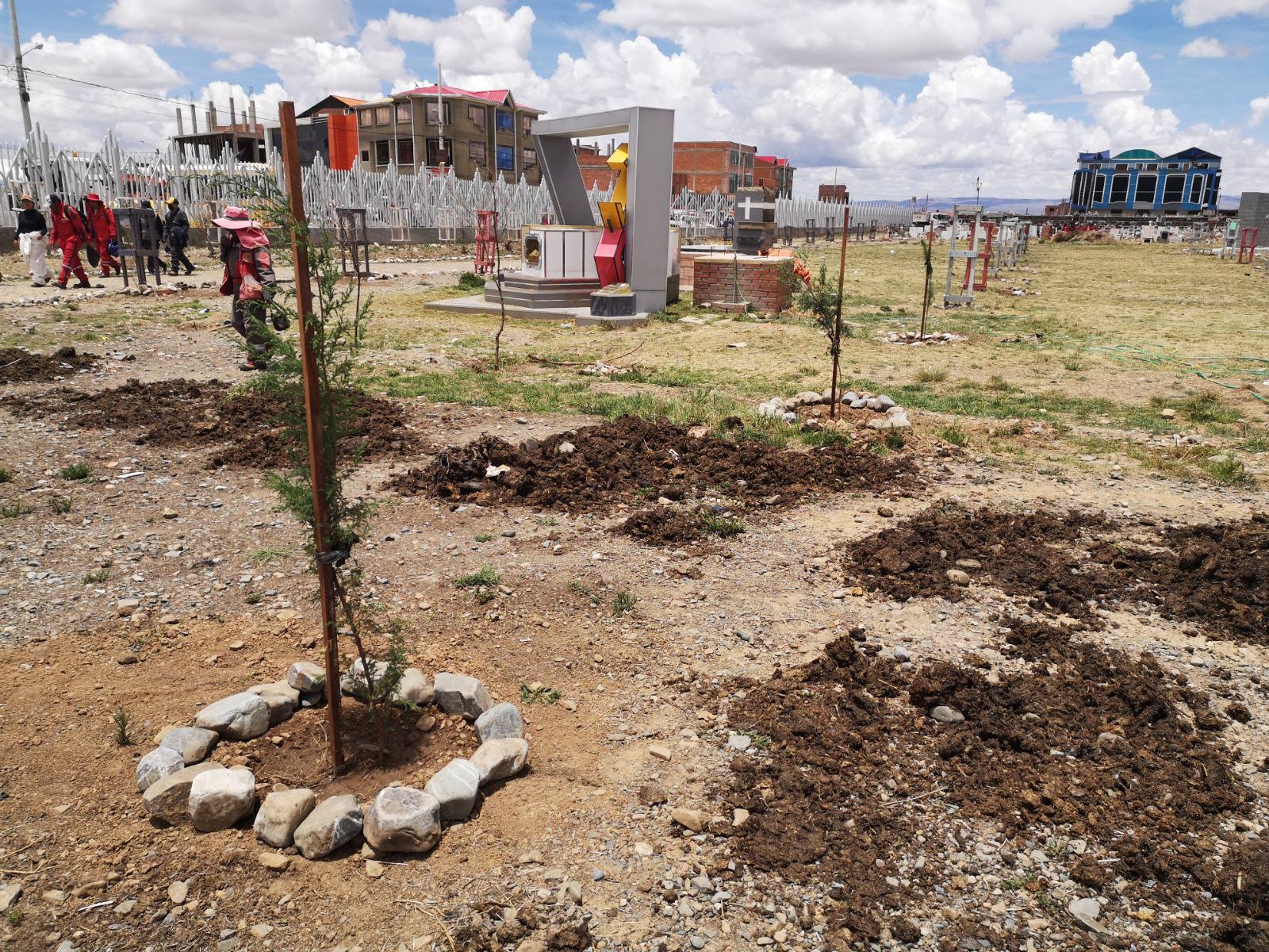 En el camposanto se colocaron plantines de las especies arbustivas, arbóreas, además de las especies nativas como kiswaras, queñuas, pino ciprés, pino radiata y acacias que son árboles que demostraron una mejor aclimatación en el sector.