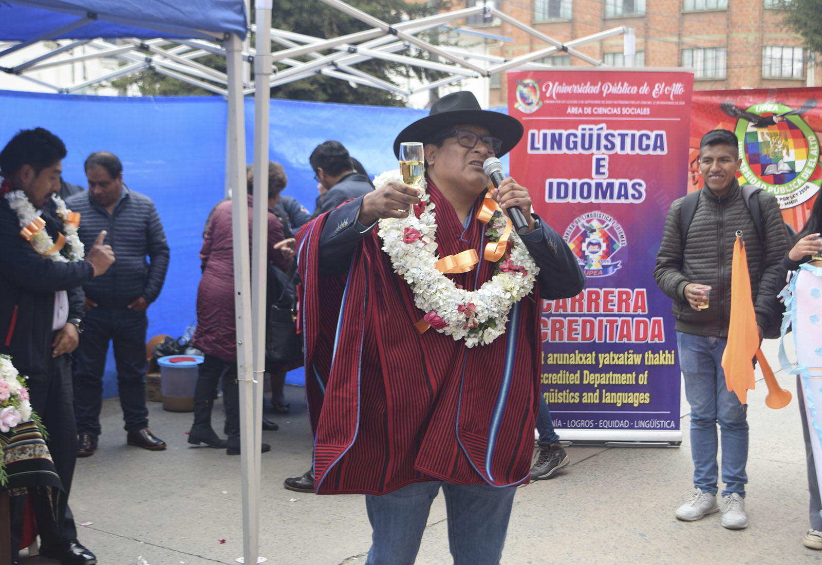 Durante la ceremonia, el Rector Dr. Carlos Condori se refirió cerrar la gestión dos años atrás con cero de déficit y prever la conclusión (2025) de forma satisfactoria y sin vacíos financieros, además reiteró el salto académico de la UPEA del puesto 32 al 14, de las 54 universidades que existe en el Sistema Universitario.