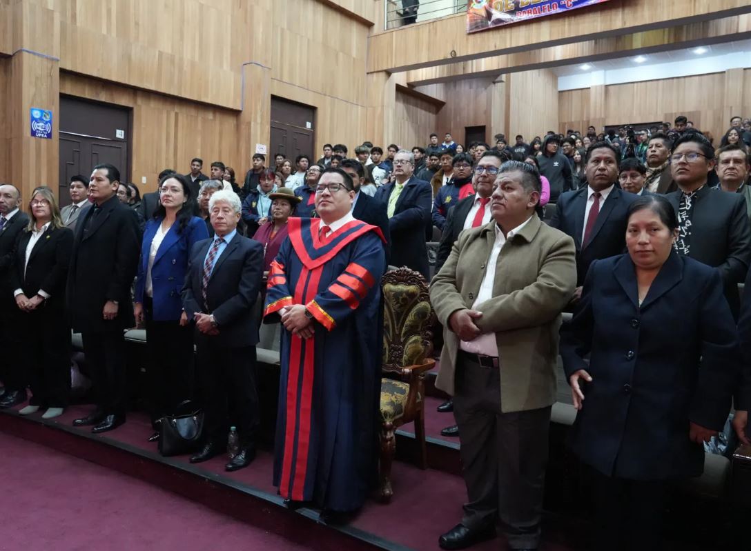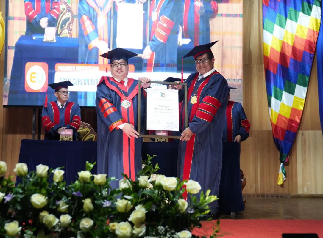 La Paz, 18 abr.- La Universidad Pública de El Alto (UPEA) otorgó el título de Doctor Honoris Causa al Fiscal General del Estado, Roger Mariaca Montenegro, destacando su trayectoria profesional, su aporte al desarrollo del Derecho y su compromiso con la defensa de la sociedad.