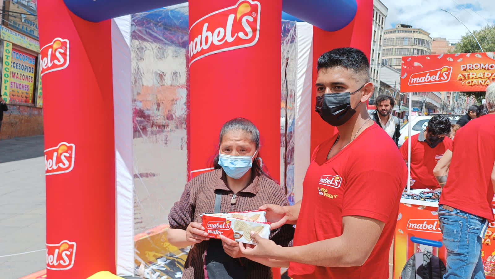 La Paz, 10 feb.- Este viernes, en el centro de la ciudad de La Paz, Mabel’s puso en marcha la ruta de la Cabina Ganadora “Atrapa y Gana” y decenas de consumidores vivieron la experiencia de ganar premios al instante. La actividad llegará además a los lugares más populares de La Paz y El Alto, como la calle Garcilazo, la plaza San Francisco, la avenida Tiahuanacu, la Feria 16 de julio y los más concurridos supermercados de la zona sur.